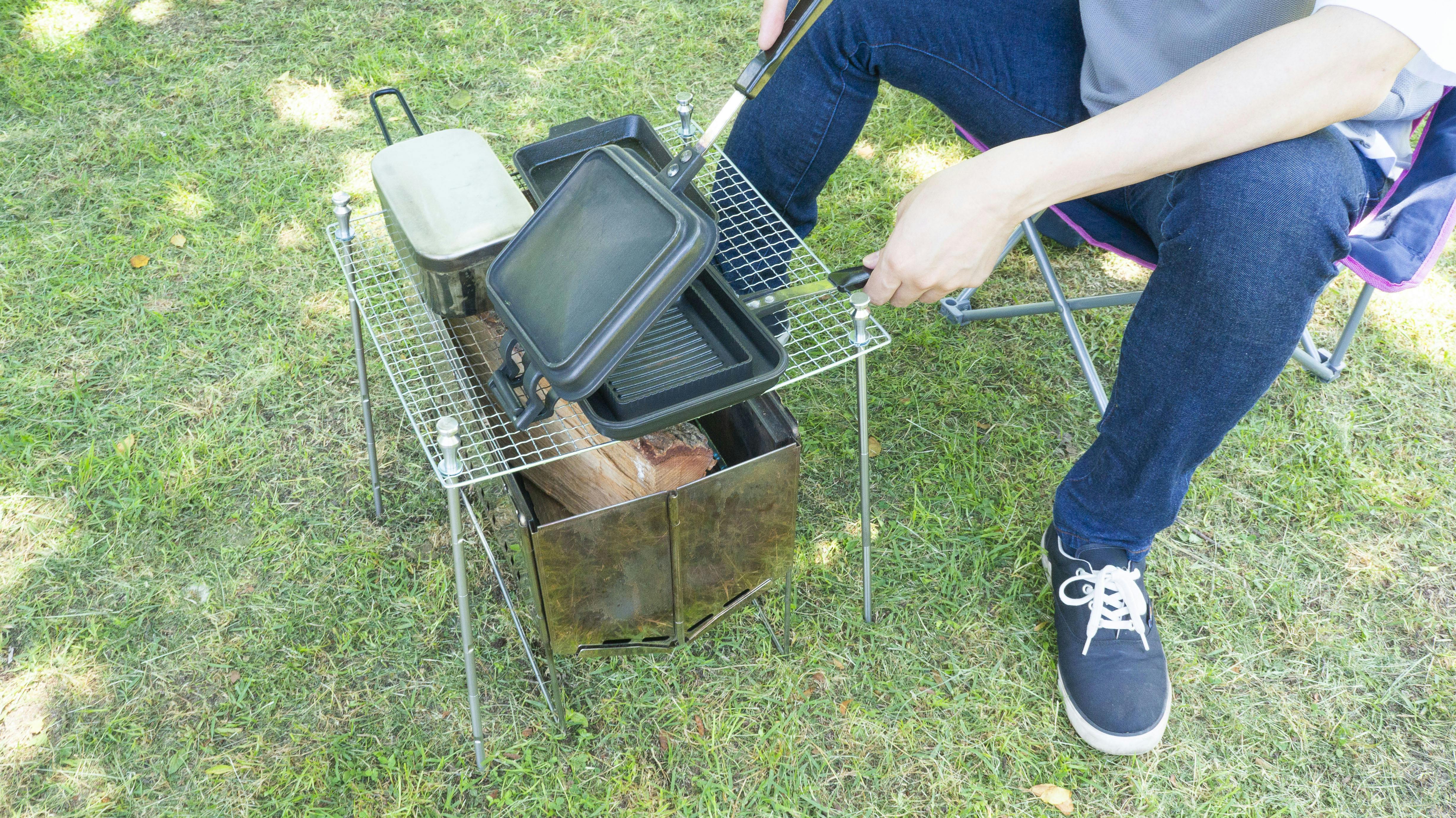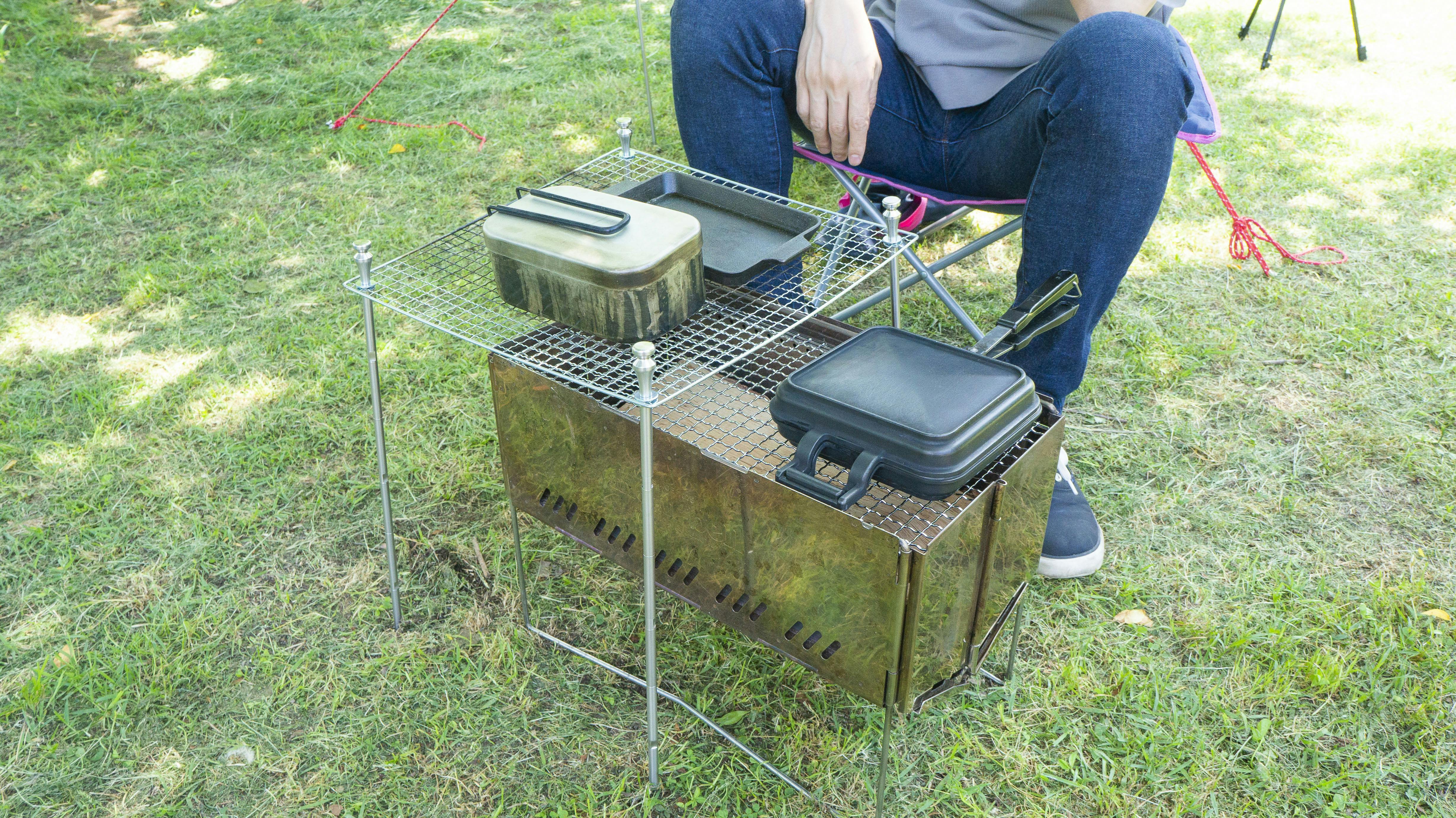 調理をするときの火加減はキャンプで悩ましい問題です。肉はもっと火を通したいけど、野菜はもう十分。けれども、冷ましたくはない。一般的なコンロは本体と網が一体化しているため、食材を火から遠ざけることが難しいために起こります。そこで、TSUNAGUを活用することで、火と網を分離できます。下のコンロを移動するだけで火力の調整、余熱具合が自由にコントロール可能です。