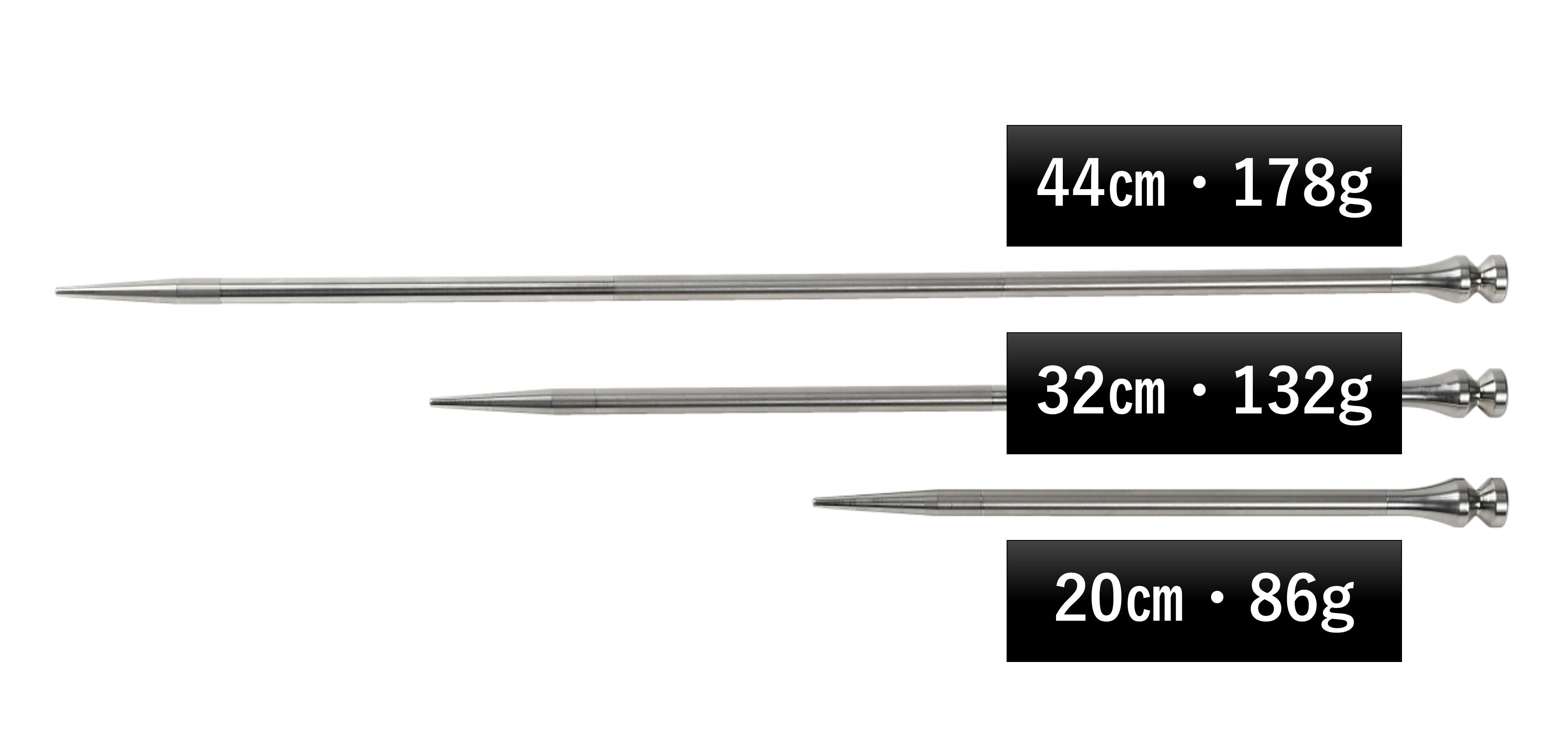 長さ12㎝のシャフトを追加することで、ペグの全長は20cm、32cm、44cmまで伸ばすことができます。たくさんのペグを持ち歩かなくても、追加シャフトをカバンに入れればどんな地面でも安心です。