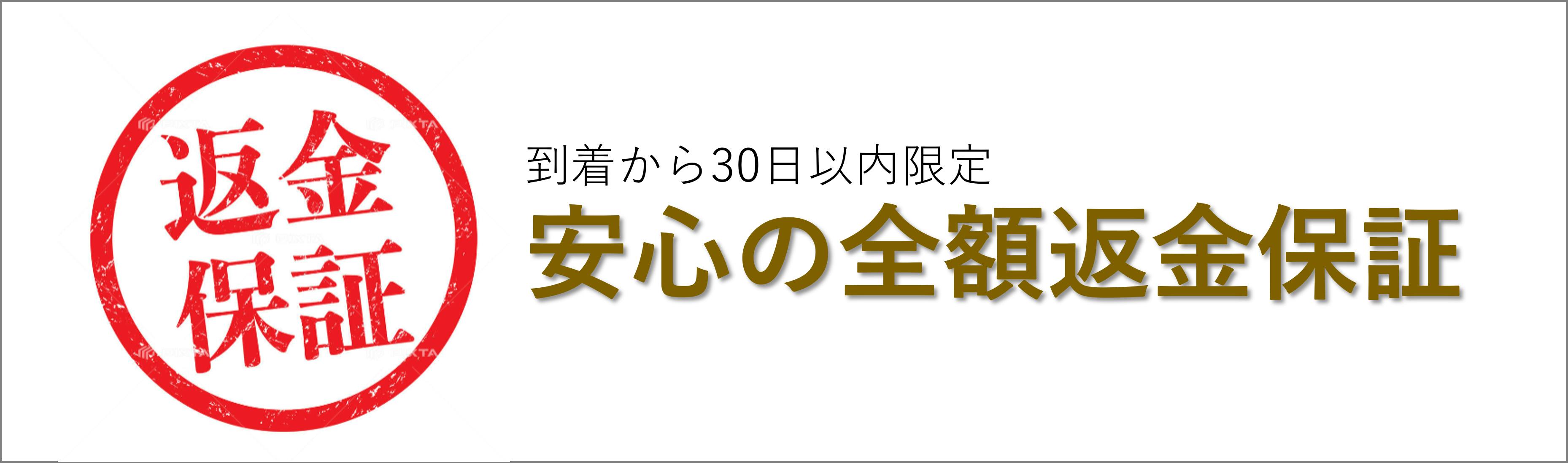 A7:商品到着から30日以内であれば、商品にご満足いただけない場合は「全額返金保証」をお約束いたします。ご希望の際は、専用サポートにご連絡ください。お客様より商品を元払いで発送頂き、商品到着を確認した後、返金手続きを取らせていただきます。