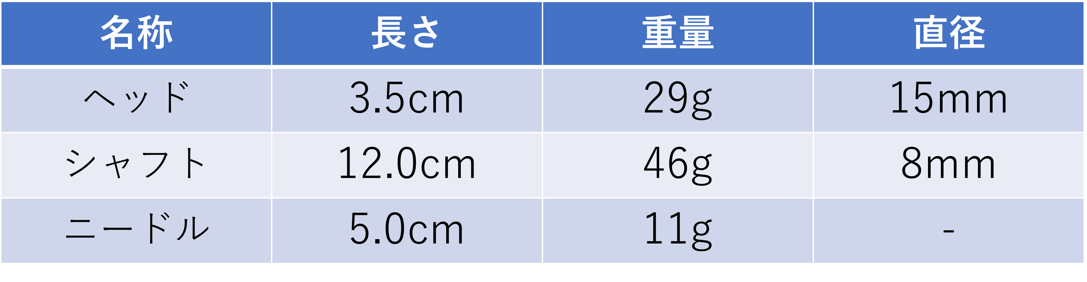 ネジ部分を合わせて、3つの部品を一つに組み立てます。頭と先端のネジを手で回して、しっかり締めてください。※緩んでいる状態でハンマーで叩くとネジが壊れる原因になります