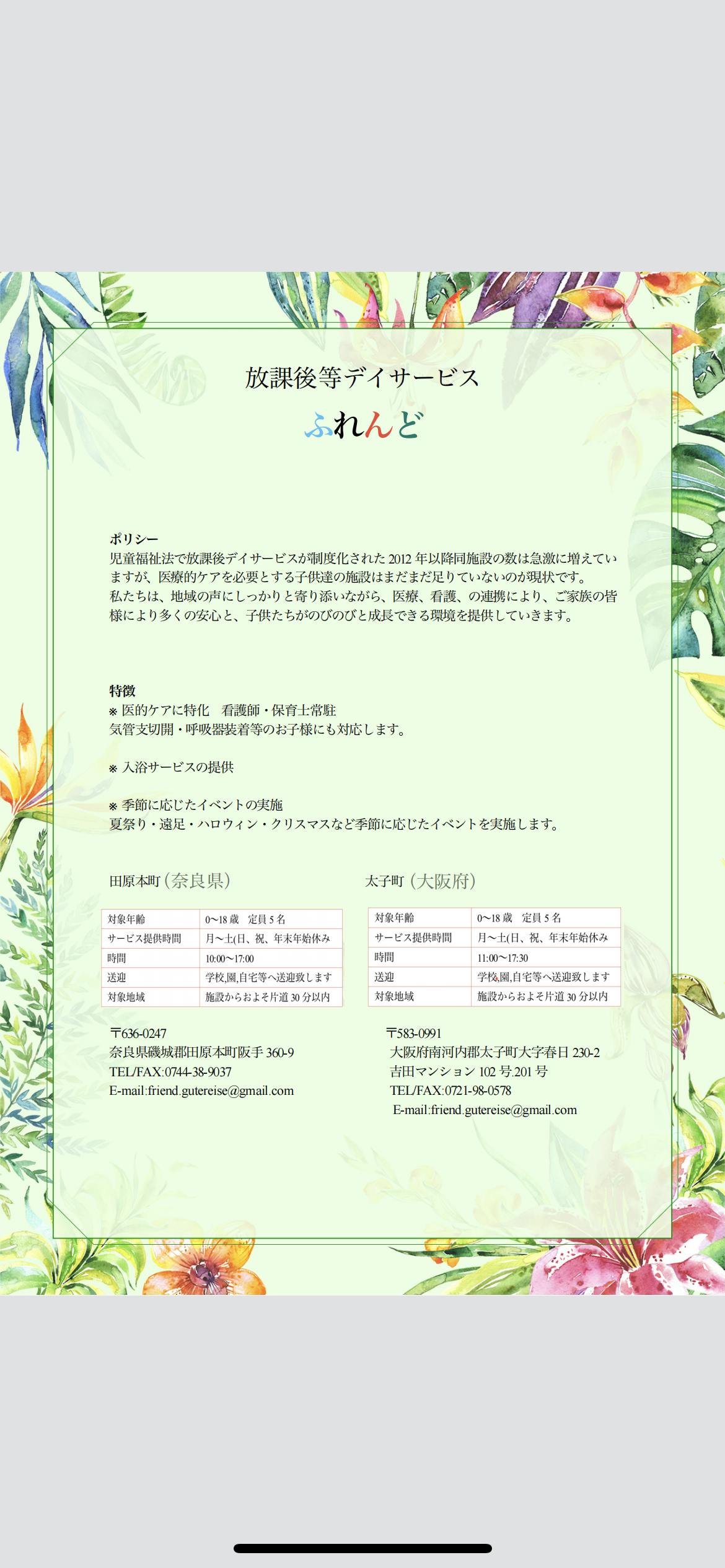 私は奈良県田原本町にある放課後等デイサービス“ふれんど“の代表を務める兵頭こころと申します。