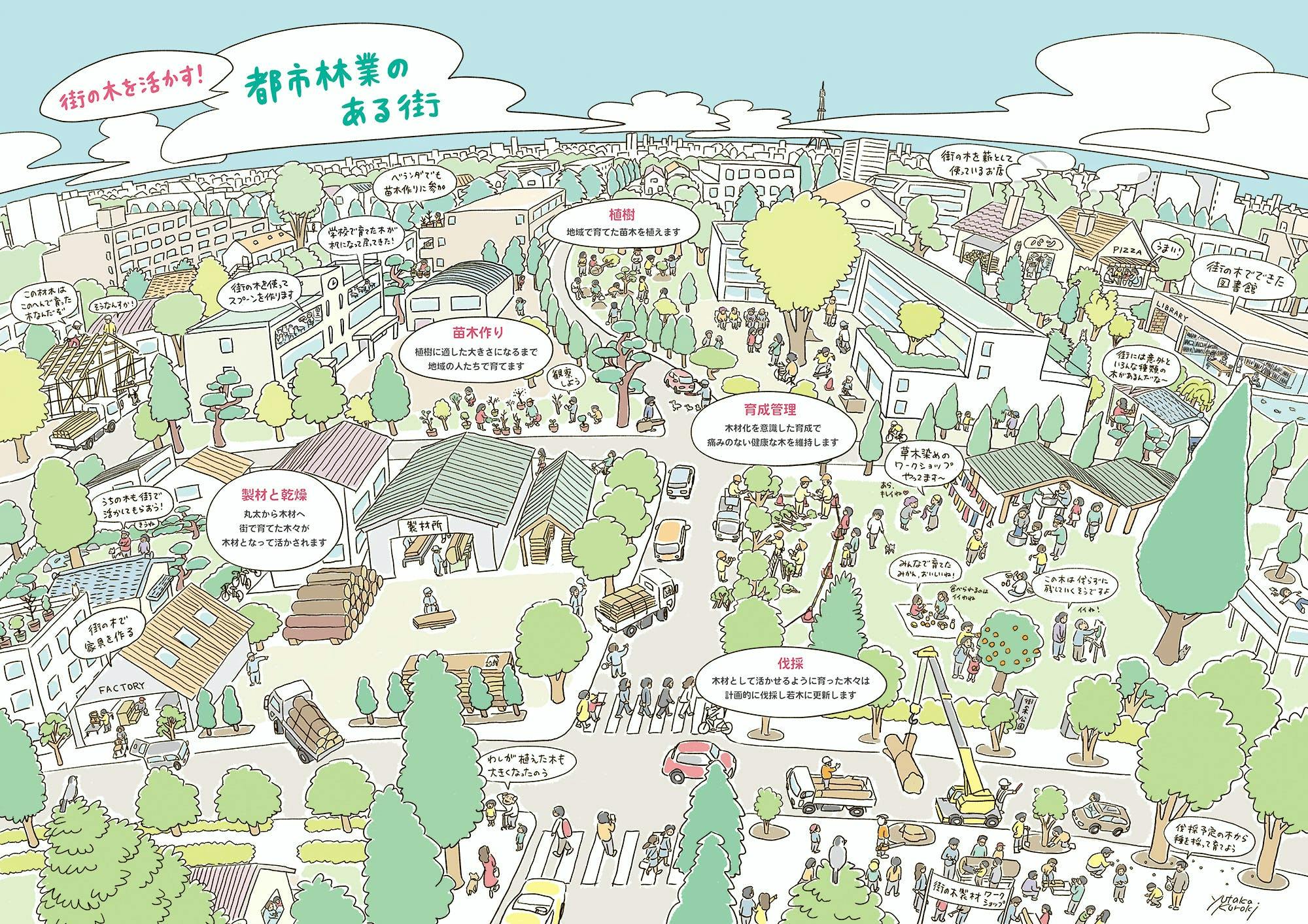 街の木と暮らしが絡み合いながら循環する街。あらゆる側面から「木があって良かった!」を最大化して、そのなかで「木材としての活用」も当たり前にある街の姿、それがこの取組みの黎明期、10年前に掲げた「都市林業」のある街というヴィジョンです。