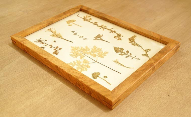 中身は入っておりませんので、ご自身で好きな植物を集めて作ってみてください。草花だけでなく、木の葉っぱや秋の色とりどりの落ち葉など身近な自然の面白さを、改めて発見するきっかけに、この額縁をしていただければと思います。