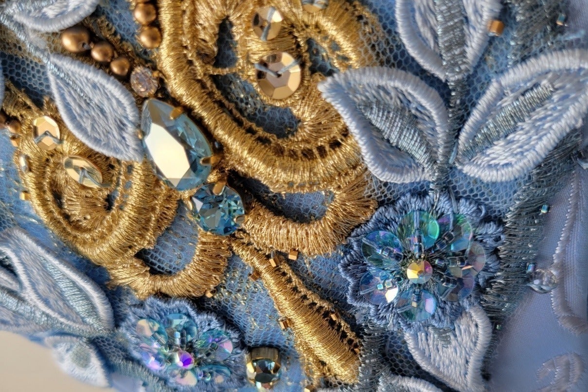 さらに、ペアテが一番得意とする手縫いを活かし、ビーズ、スパンコール、ストーンを一粒一粒手で縫い込む事に力を注ぎました。