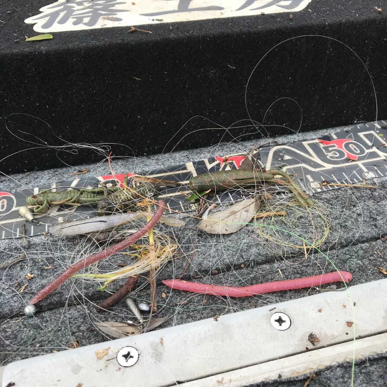 ~こちらは木の枝に引っ掛かっていたルアーやライン、シンカーなど~