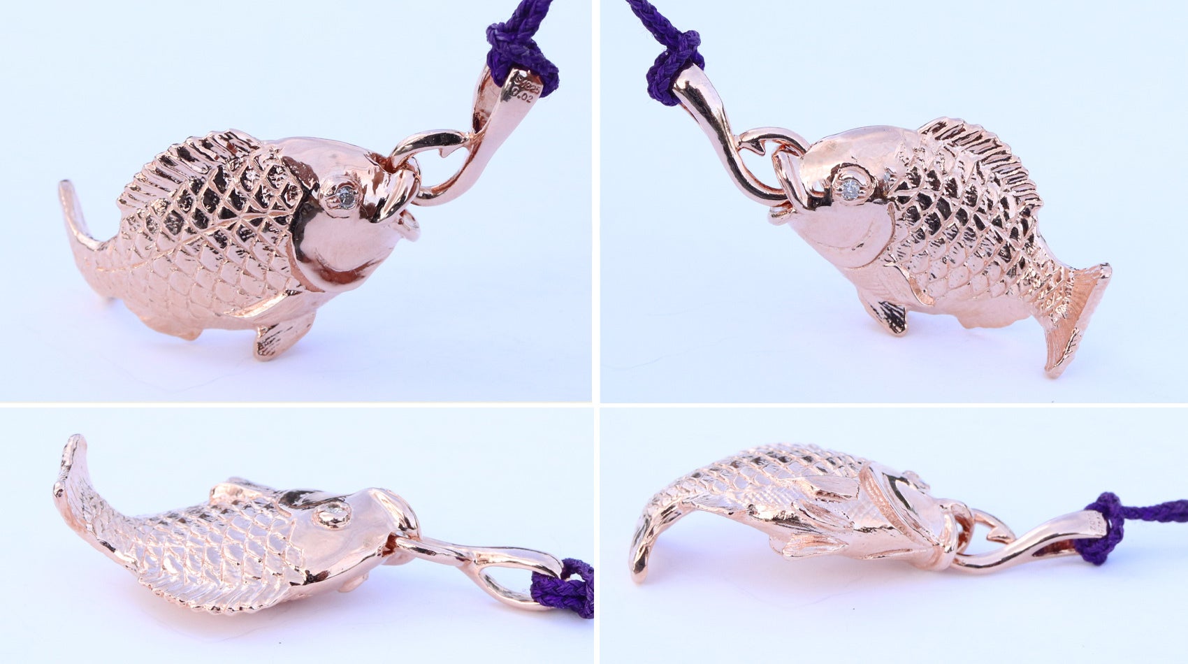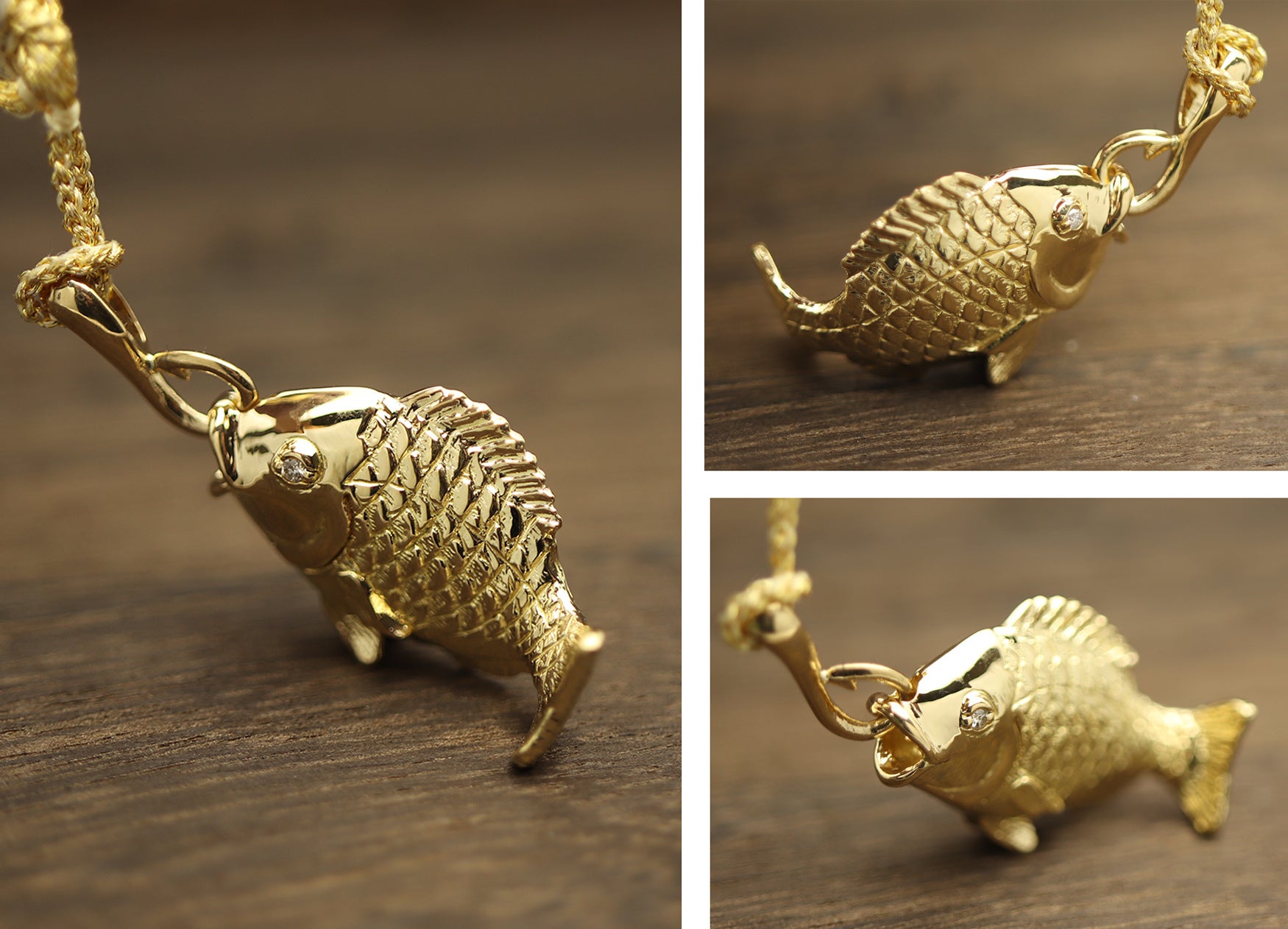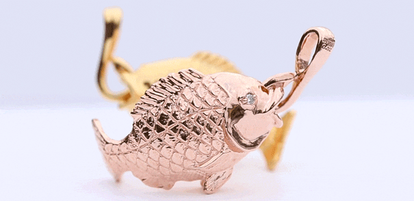 お金が貯まりそうな根付です。しかも、紐を通す部分は釣り針デザインなので「大金吊り上げる!」という幸運な根付になっています。