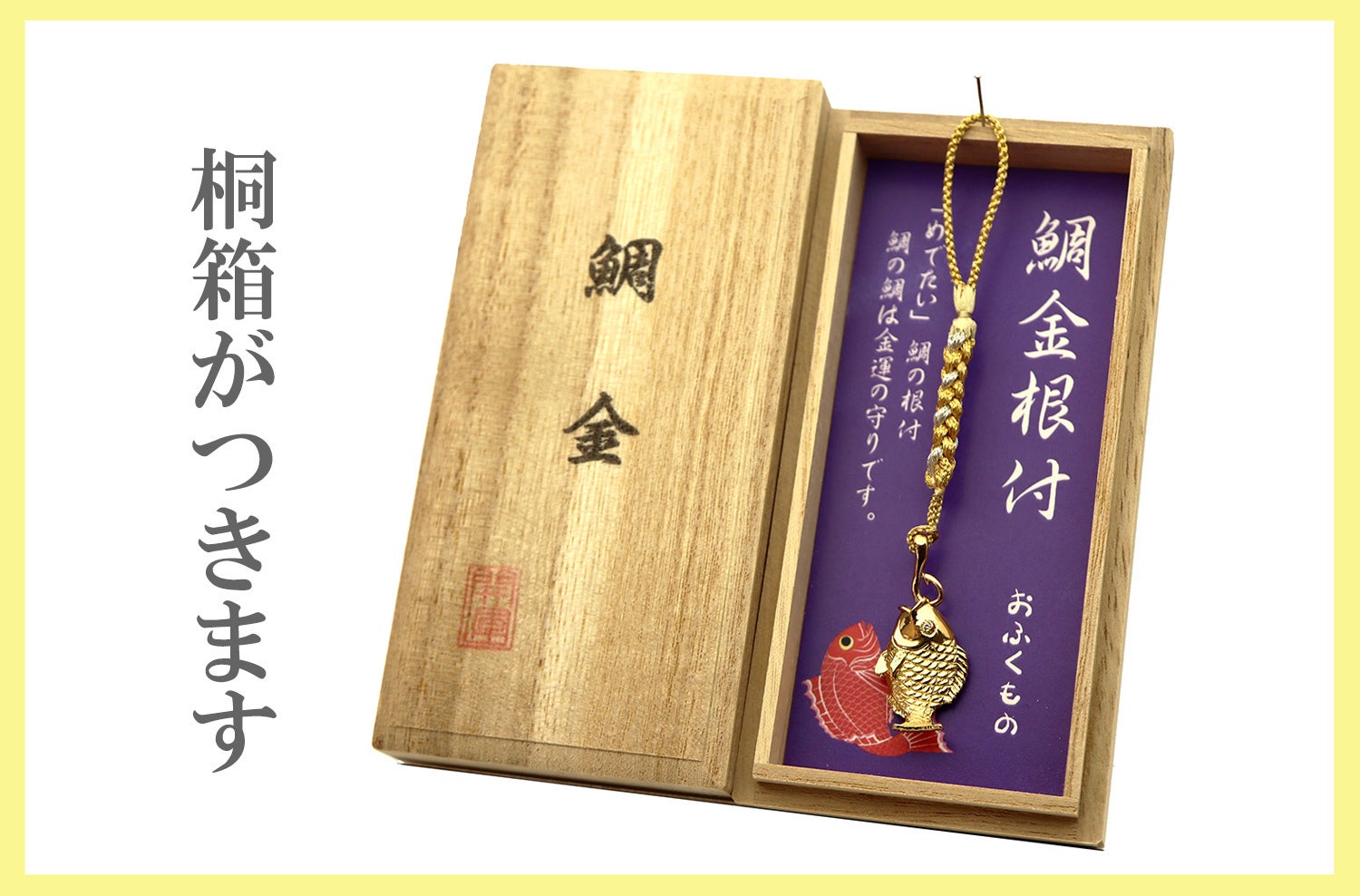 根付紐(ゴールドは金色/ピンクは紫)・桐箱付き
