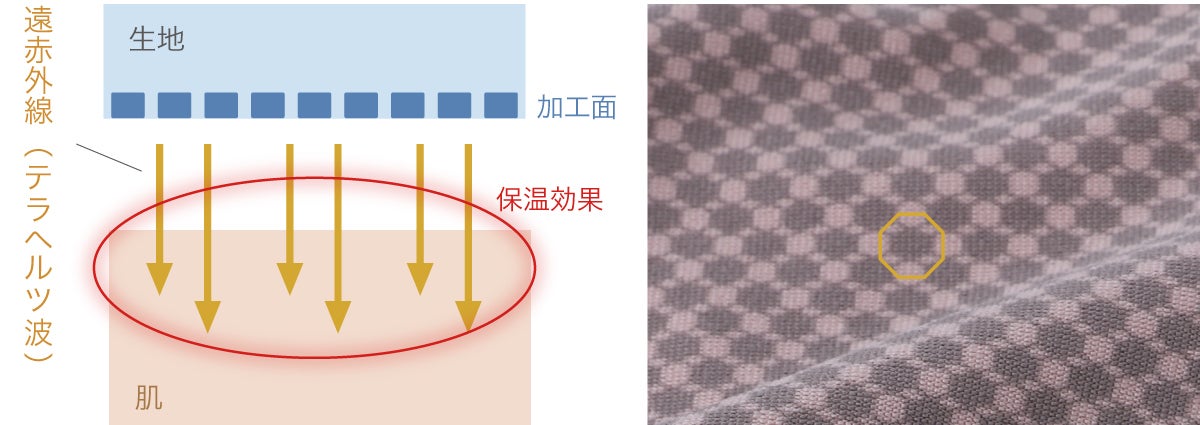 遠赤外線(テラヘルツ波を含む)のパワーが最も発揮できるプリントデザインを研究して採用 。干渉作用を極力起こさないようなデザインに仕上げ、遠赤外線の効果がなくならないように工夫しました。