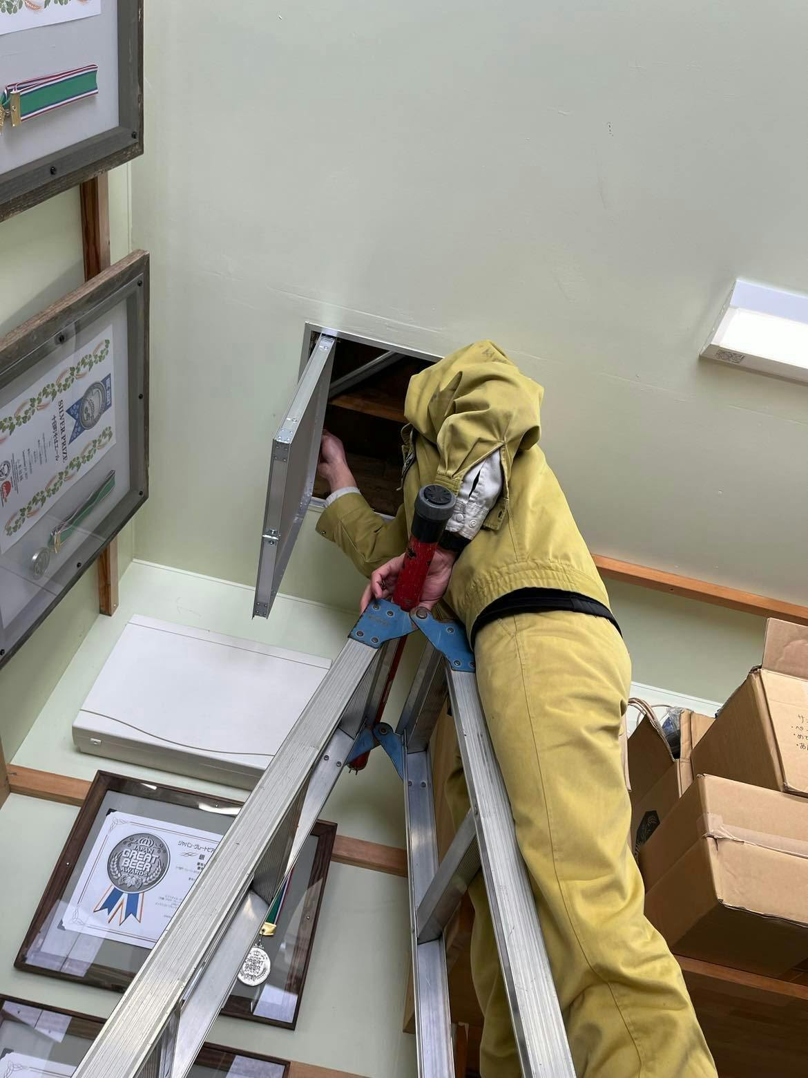 電気の工事も始まり、こんな屋根裏に入る入口があったのねと改めて気が付いたり。
