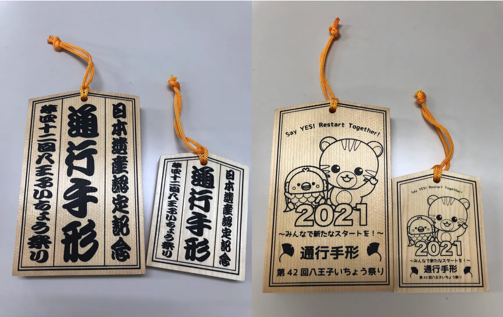 八王子の史跡「関所」になぞらえた「第43回オリジナル手形」のリターンです!皆さんと一緒にお祭りの継続を祈念し、ご提供いたします。本来は多摩御陵入口交差点の本部または各関所で販売の木製の通行手形を手に入れて、追分関所から小仏関所までの焼印所(今年はスタンプ)を歩いて巡ります。