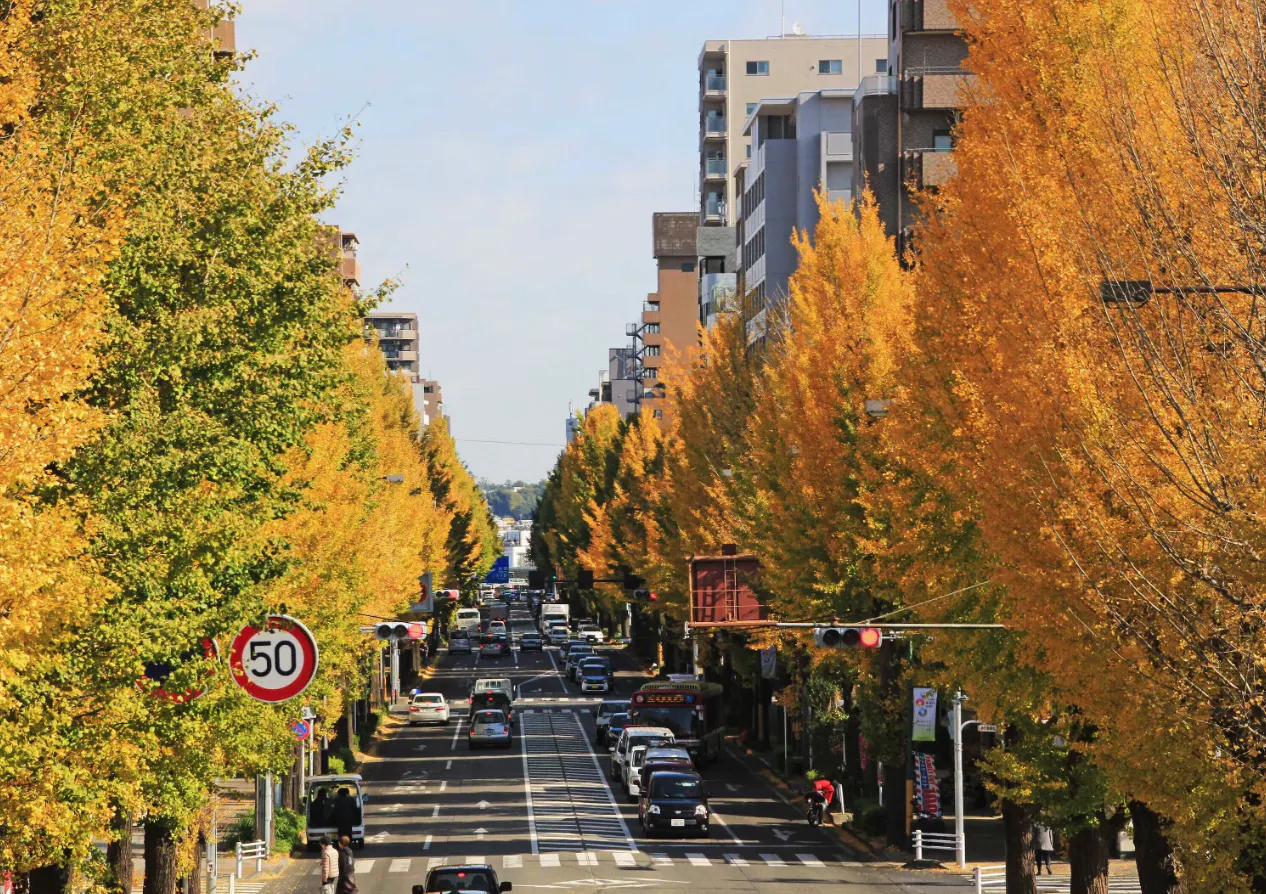 昭和2年から4年にかけて、八王子市追分町交差点から高尾駅入口まで、約4.5kmにわたる甲州街道(国道20号)の両側に、大正天皇陵造営の記念樹として約770本のいちょうの木が植樹されました。以来、季節に応じてそれぞれの風景で街を彩り、秋になると特に美しく黄葉し、道行く人の目を楽しませてくれています。