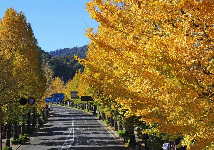 昭和2年から4年にかけて、八王子市追分町交差点から高尾駅入口まで、約4.5kmにわたる甲州街道(国道20号)の両側に、大正天皇陵造営の記念樹として約770本のいちょうの木が植樹されました。以来、季節に応じてそれぞれの風景で街を彩り、秋になると特に美しく黄葉し、道行く人の目を楽しませてくれています。