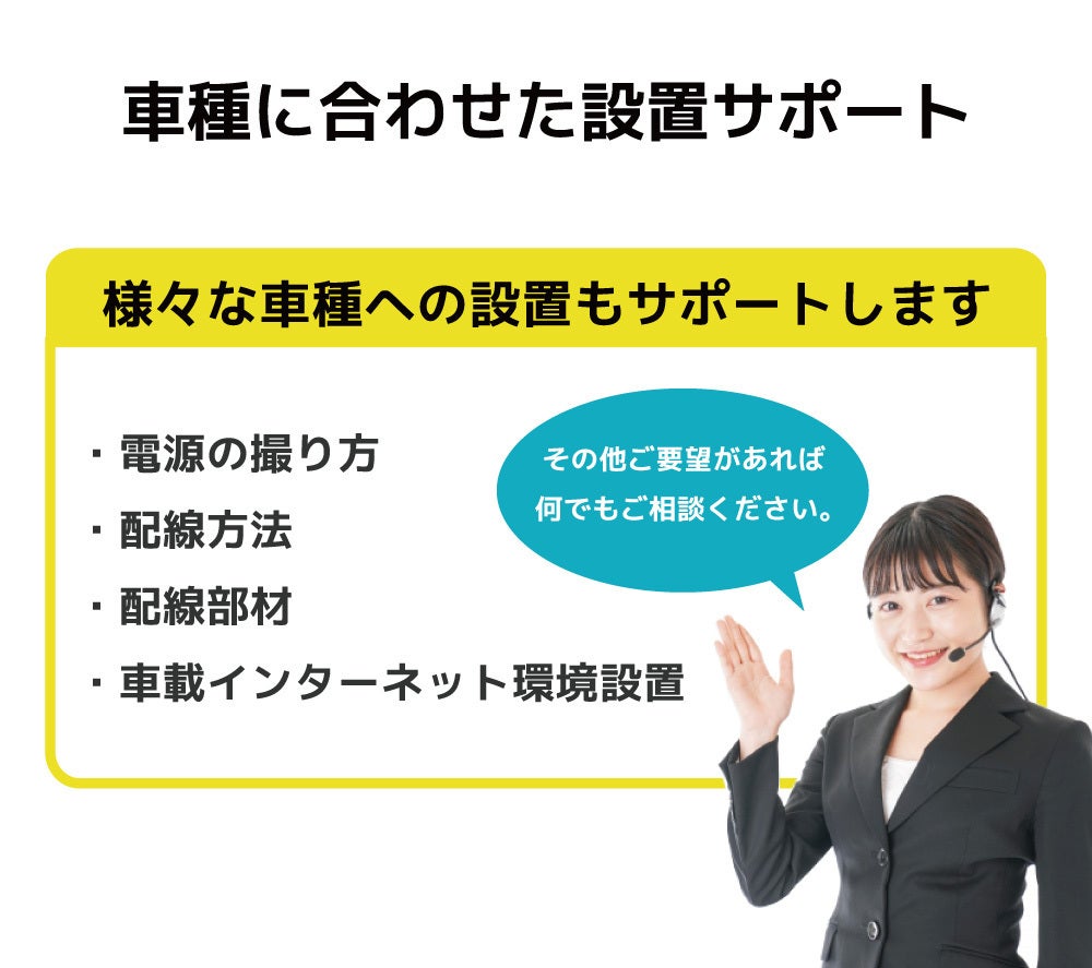 バス・車への取付け等のご希望の場合にはご使用方法・ご不明点等は弊社サポート担当より対応させて頂きます。