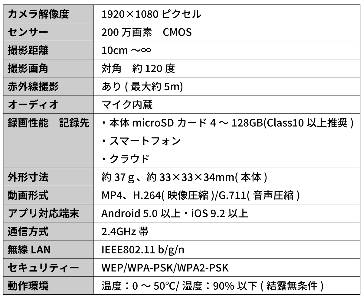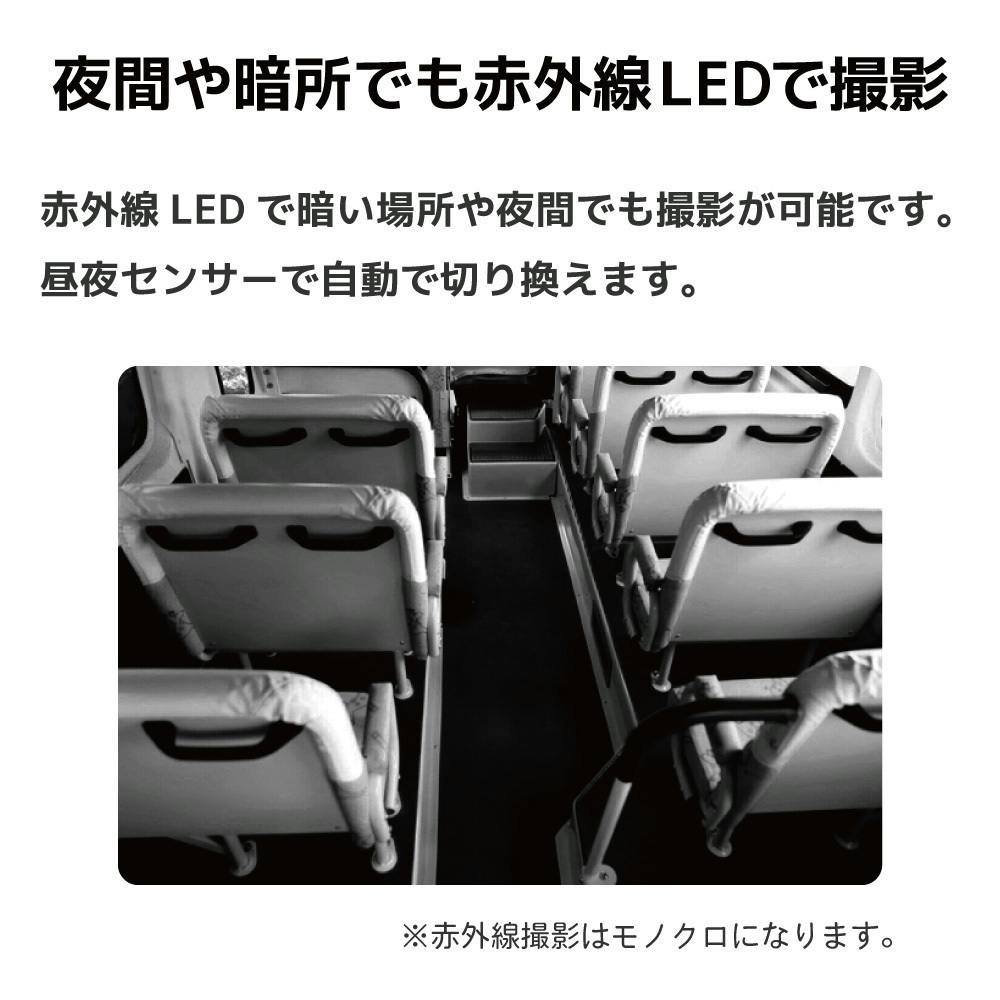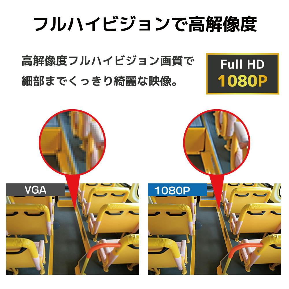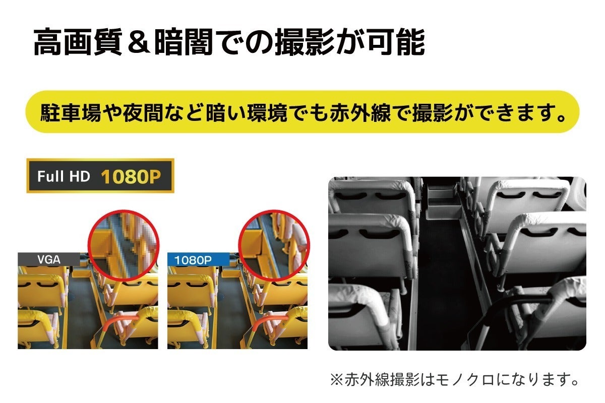 フルHD(200万画素)の高画質撮影、夜間や暗い場所でもしっかり撮影が可能。