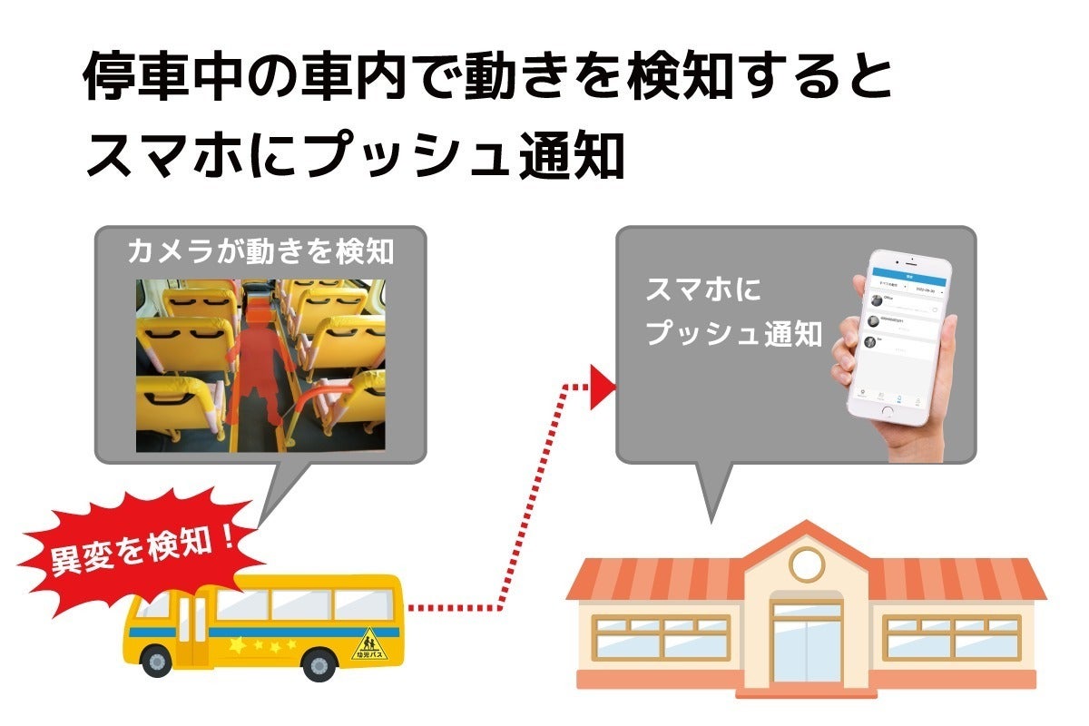 管理者は通知を見て遠隔地から車内を確認したり、園児の状態を確認して検知します。