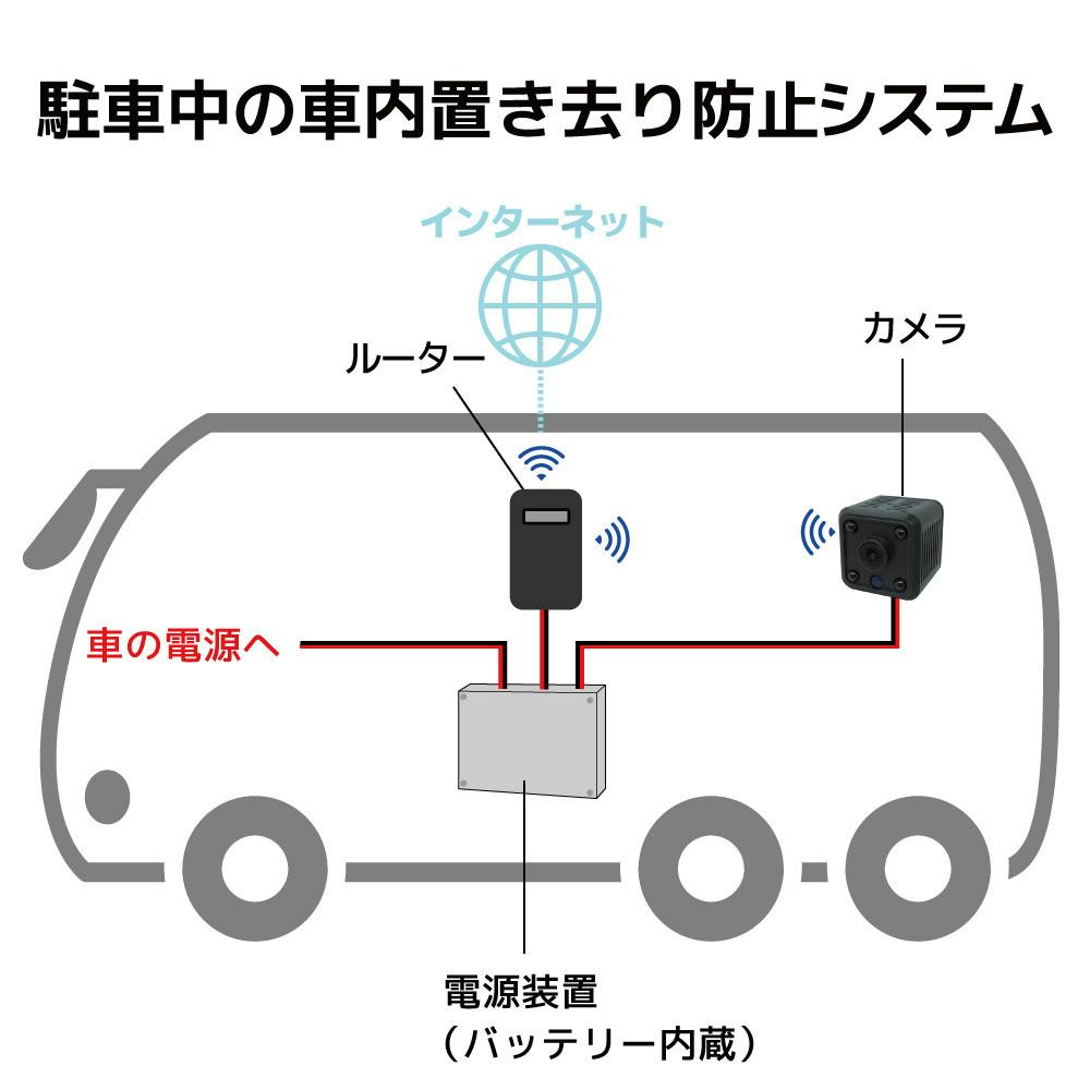 WIFI信号を車内の(車載用)モバイルルーターを経由して情報をインターネットへ伝送します。