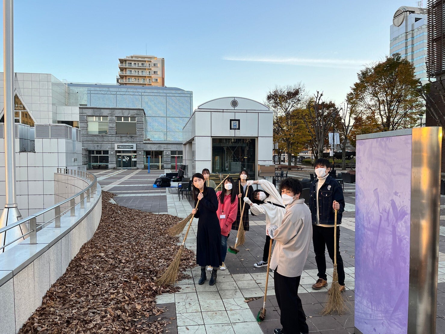 今日は1日お祭り会場のつくばセンター広場で準備を行いました。