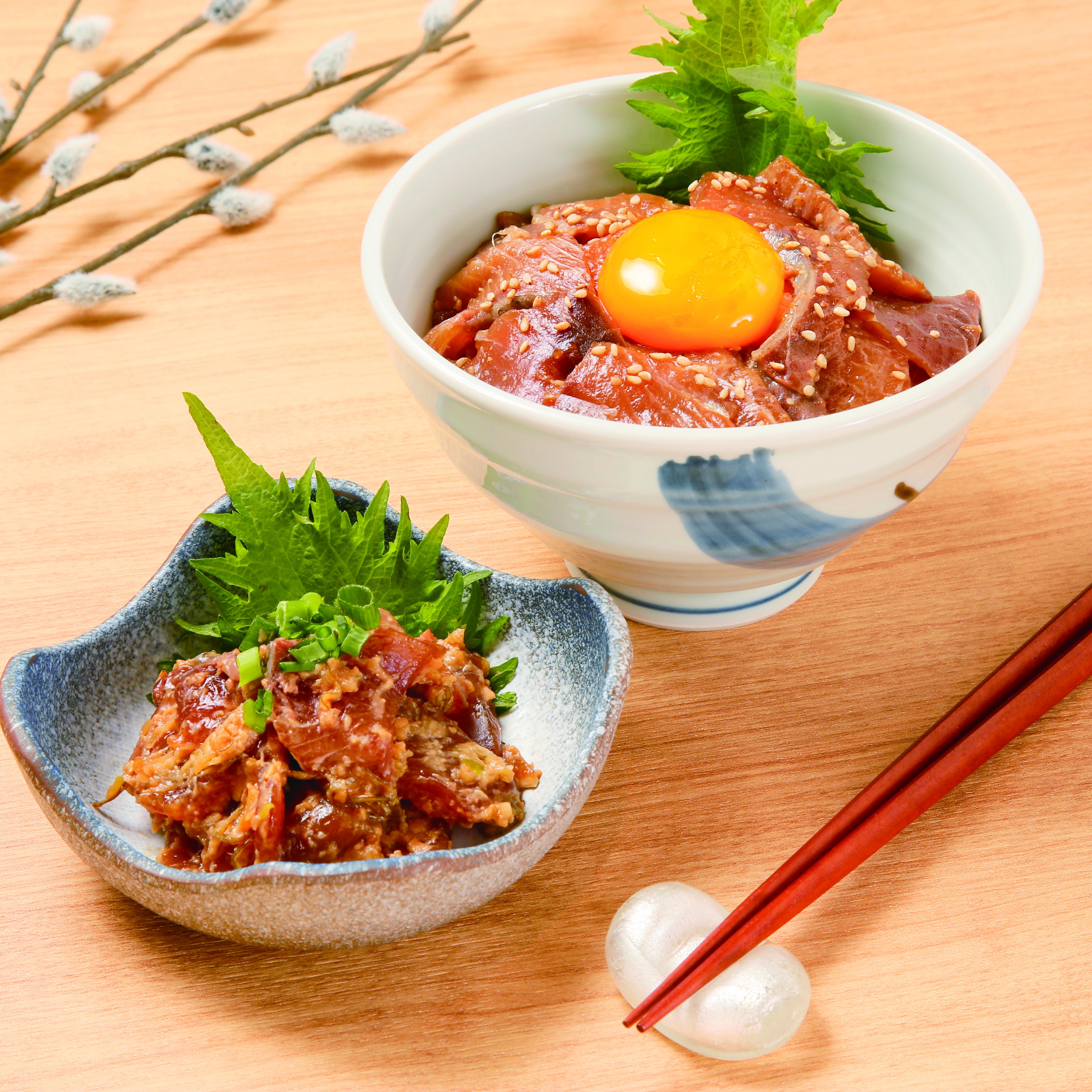 お好みで大葉や卵黄、ごま、のり、わさびなどを加えてもおいしくお召し上がりいただけます。