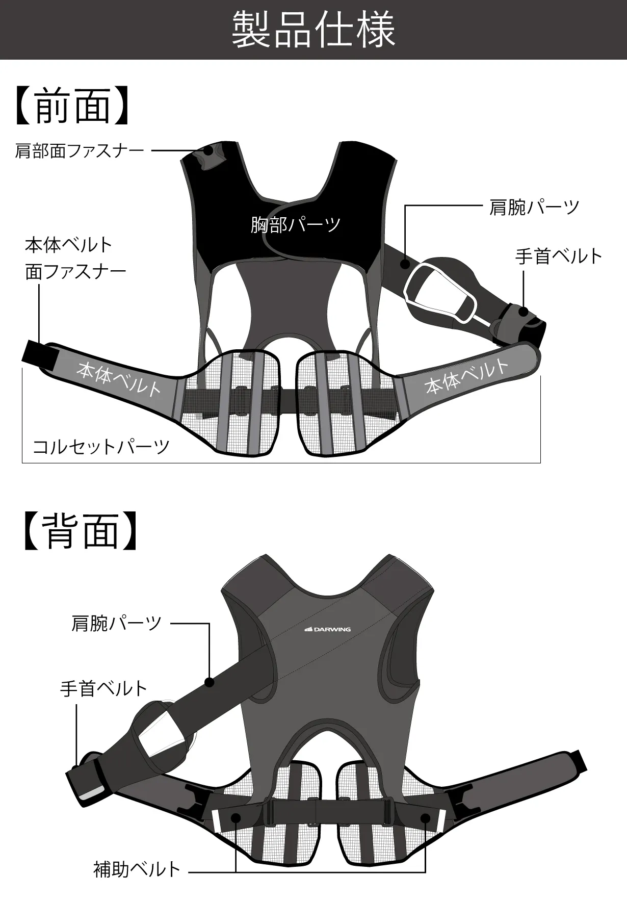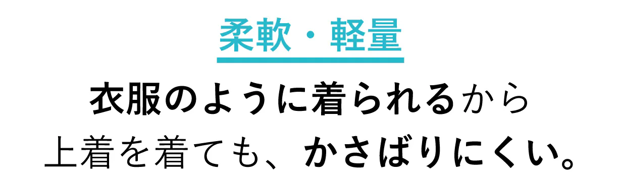 無電力・無電動でまるで衣服のように軽く、作業のじゃまになりにくい柔軟な装着感を実現しました。厚着をする冬にDARWING ワーキングアシストAS(もしくは本品)を装着した上から服を着てもかさばりにくく、汗をかいたり汚れても手洗い・水洗いが可能です。