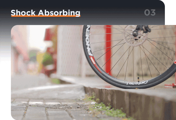 CM2.0のほぼ全面に設けている3Dエアクッションが、段差や凸ポコ道の衝撃をしっかり吸収。長時間走行してもストレスを感じさせない働きをもたらします。