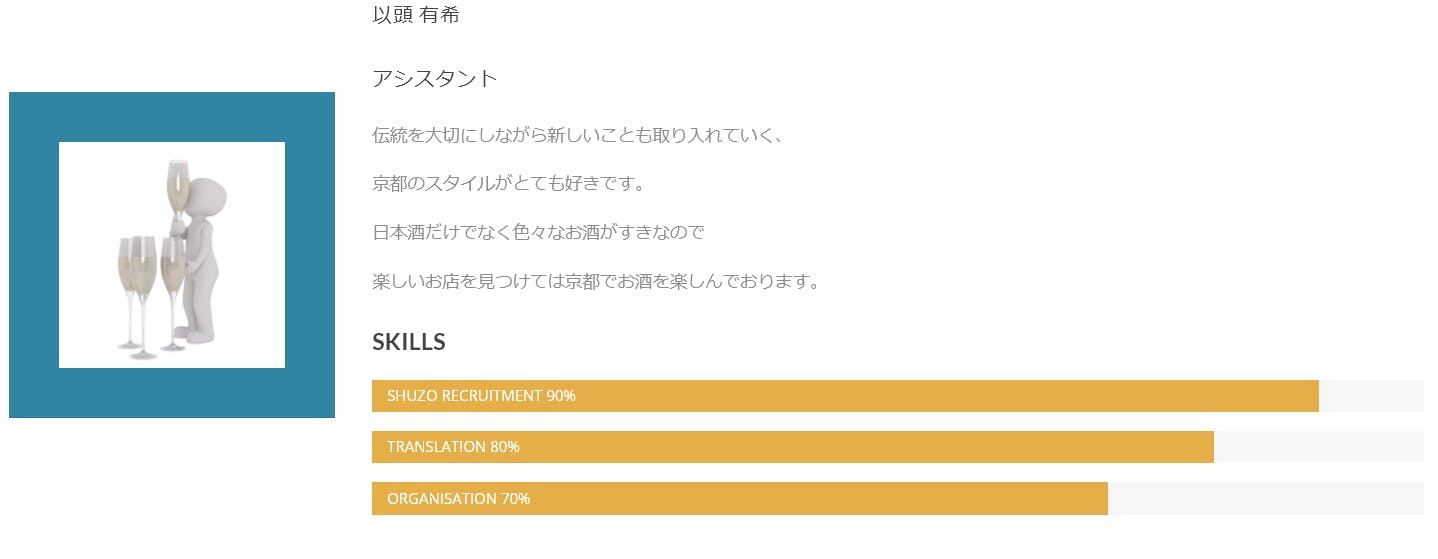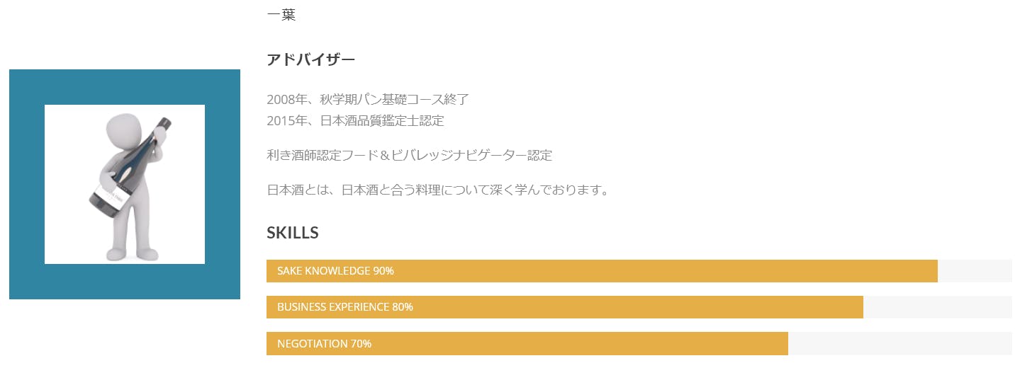 * マネージメントチームに、日本酒に深い知識と経験を持つ日本酒ソムリエがおります。