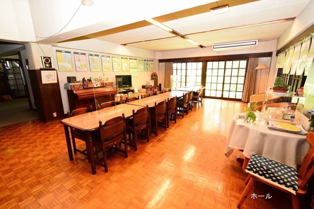 設 備 : 客室4名×10室 2名×2室 食堂 ホール 男女別の浴室 トイレ 洗面所 暖炉 ピアノ ギター など