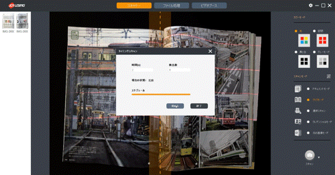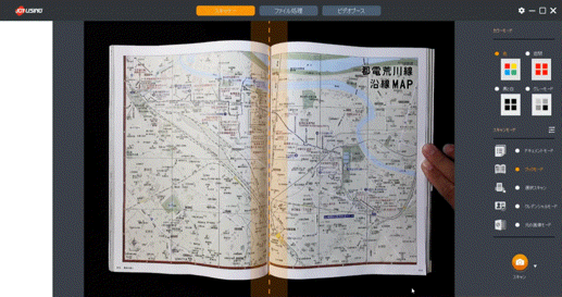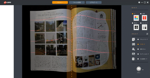 見開きの書籍を、1ページずつ自動で分割する機能です。書籍をスキャンする時にこの機能を作動させておけば、スキャンするごとに左右に分割。後で編集ソフトを使って分割作業する手間が省けます。