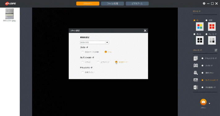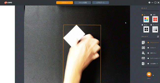 スキャンしたデータを必要な部分だけトリミング(切り抜き)できる機能です。別途画像編集ソフトを使わずに済み便利です。