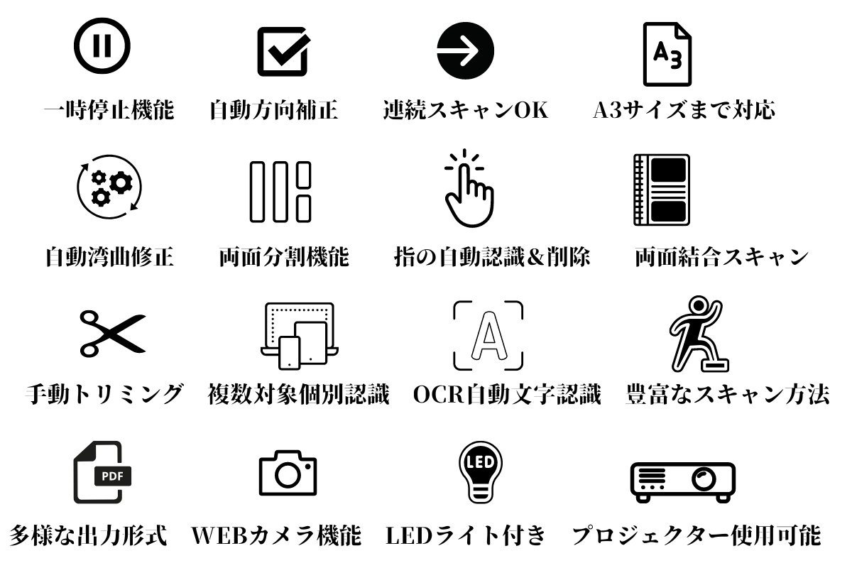 【Joysing】V160ProとV320Proは見開きA3サイズまでの書籍や書類を高速高解像度でスキャンできる画期的な多機能スキャナーです。PCに繋ぐだけですぐに使え、レーザー認識による精度の高い自動補正機能やOCR(光学文字認識)によるデータ編集機能など多数搭載。しかもプロジェクターしてもつかえ、使用後は省スペースで収納可能。あなたのオフィスワークや書類の電子化を強力にサポートします。