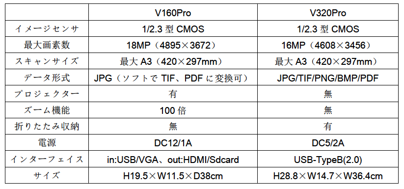 ※V320Proのみ折りたためます。