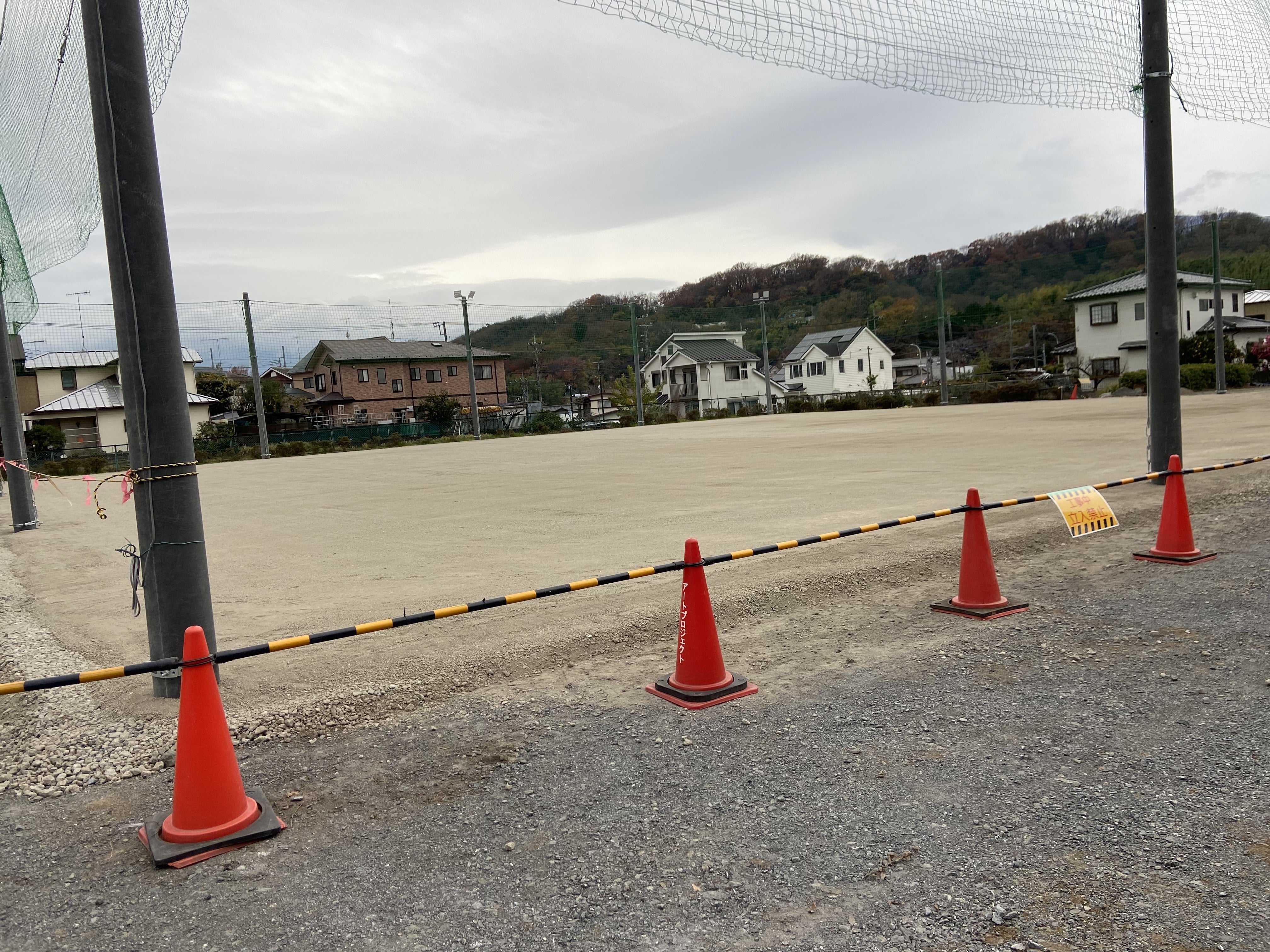 本日は砂の搬入、整地でした!10tトラックが何回も行ったり来たり!下が平らになるだけで雰囲気かなり変わりました!時間が空いてたので周辺地域のゴミ拾いも行いました!11月19日支柱工事11月24日ワイヤー、ネット貼り付け11月25日照明設置12月13日〜12月15日砂搬入、整地