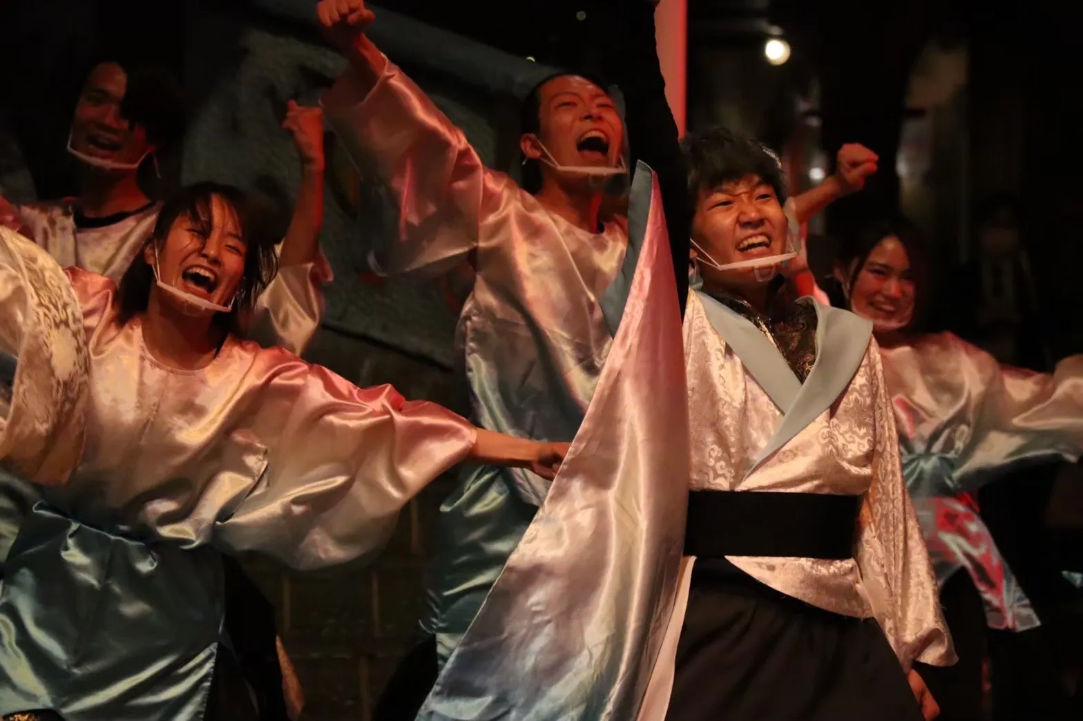 総勢100人超えの部員とともに、自分達で演舞曲、衣装、振り付けなど、1から制作した演舞を日本各地のお祭りにて披露しています。