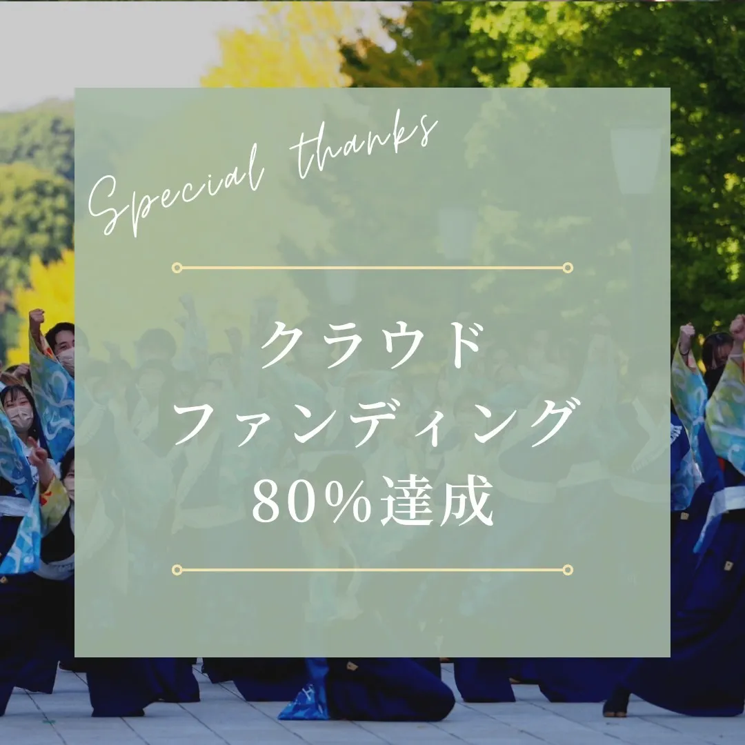「22代目東京理科大学Yosakoiソーラン部の集大成となる演舞を形に残したい!!」のクラウドファンディングが目標達成率の80%を超え,総支援額50万円を突破しました!温かいご支援やお言葉をいただいた皆様に,心より感謝申し上げます。ありがとうございます。