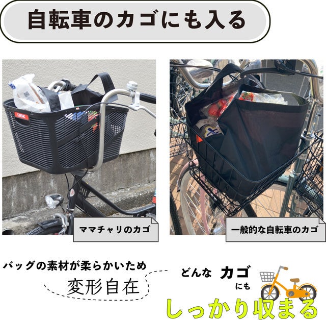 一方で、ORIBA(オリバ)は薄く柔らかい素材なので、レジ袋のように変幻自在。どんな自転車のカゴにもフィットします。