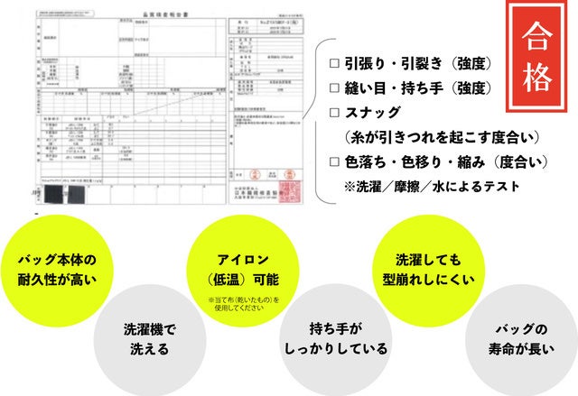 エコバッグは消耗品のため、使用頻度及び経年による劣化は免れませんが、私たちは「長く使っていただきたい」という強い思いを持って製作してきましたので、その責任としてご購入から3ヶ月は無料で修理をさせていただくサービスを付属しています。※ 片道送料(120円〜)のみご負担ください。