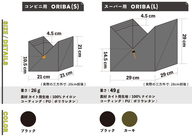 昨年、約1年かけて開発した ORIBAコンビニサイズ (S) をリリース後、ありがたいことに多くのお客様からお喜びの声をいただきました。同時に、より大きいサイズやカラーバリエーションへのご要望も多くいただき、今回お客様のお声を実現した商品のご紹介ができることを嬉しく思っております。