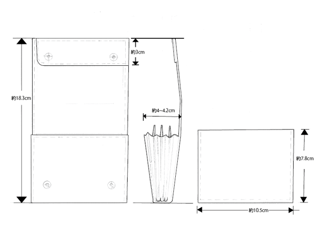 カードはたくさん入るようにというリクエストにお応えするため、マチ付きのカードケースを2か所ご用意。キャッシュカードサイズのカードが、1カ所につき5枚、合計10枚収納できます。