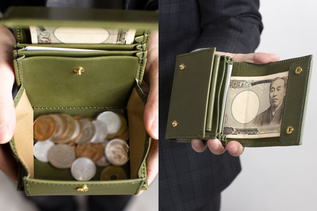 小銭入れが大きく開いてほしいというリクエストが多かったため、小銭入れは「ドル箱」と呼ばれているタイプで製作しました。大きく開くので、使いやすいです。