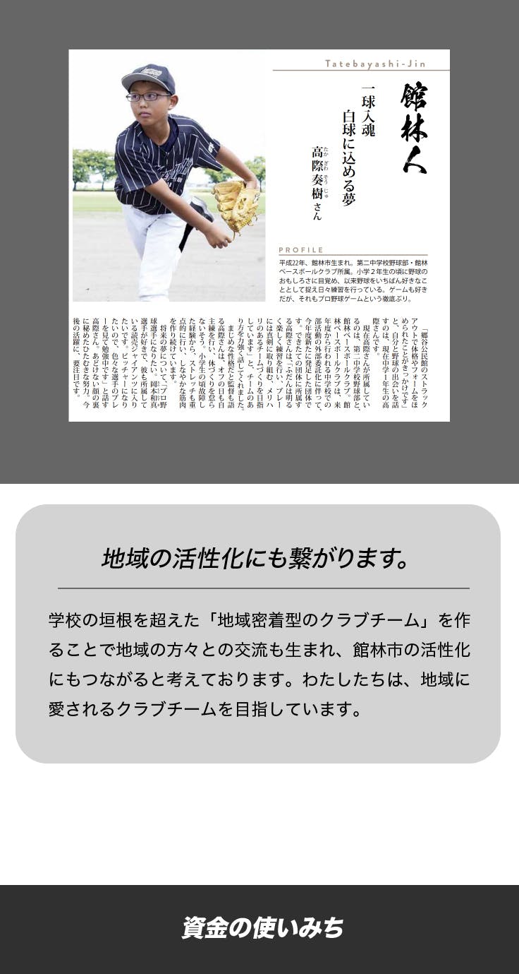 未来の野球少年・少女のために、ご支援の程よろしくお願いいたします。