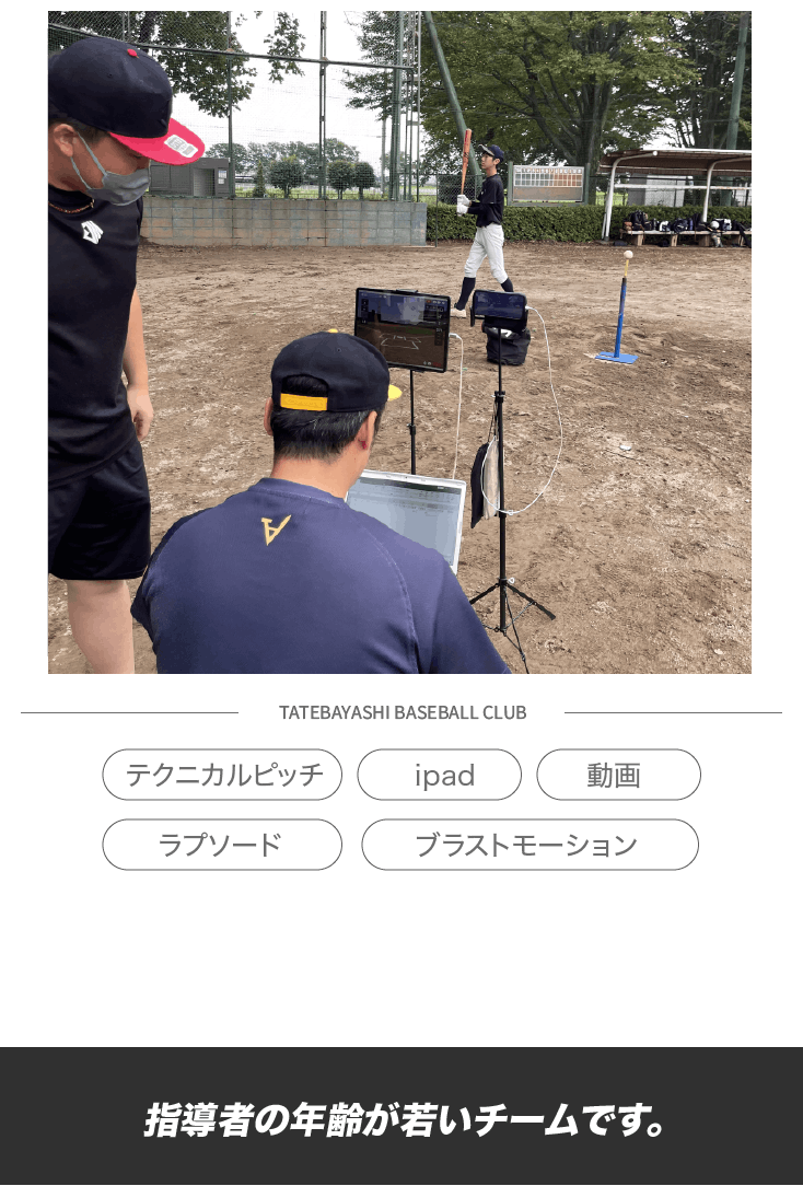 iPadやテクニカルピッチ、時にはラプソード(ピッチング、バッティングのデータを測定・分析できるポータブルトラッキングシステム)やブラストモーション(スイングの要素を測定できる機械)を使用することで今まで感覚でしかわからなかった野球のスキルを数値化します。無駄を徹底的に省き、効率の良い指導を研究しています。