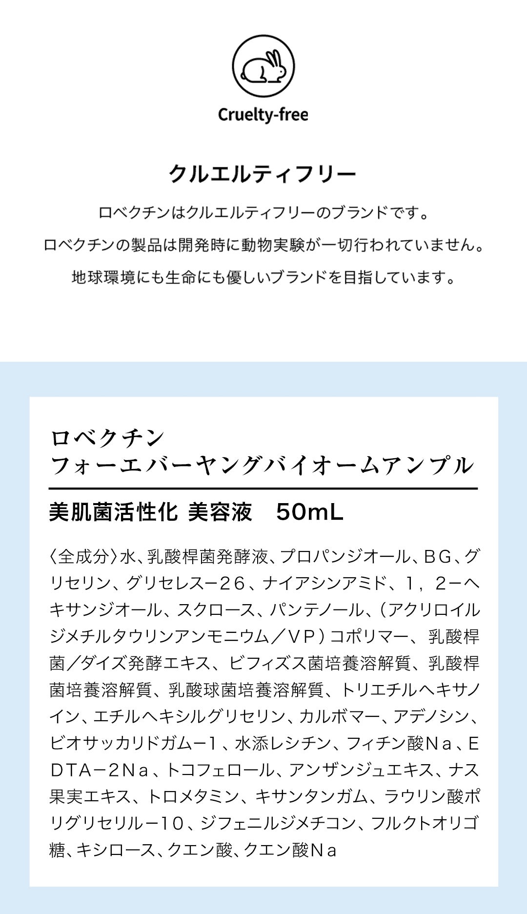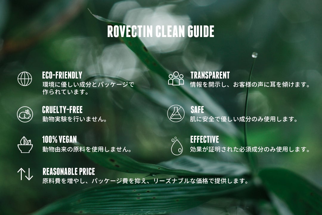 ロベクチンは開発当初の2011年より、動物実験を行わない「クルエルティフリー」動物由来成分を使用しない「100%ヴィーガン」を掲げています。