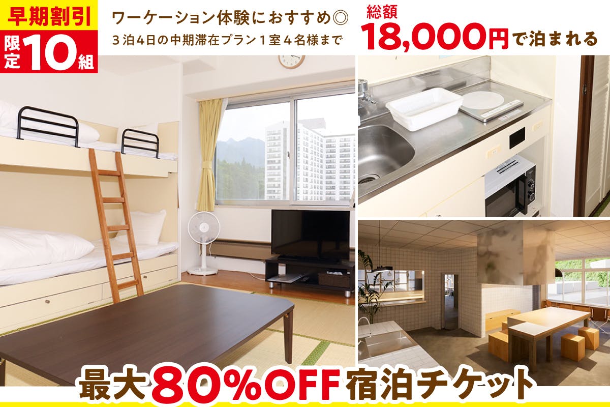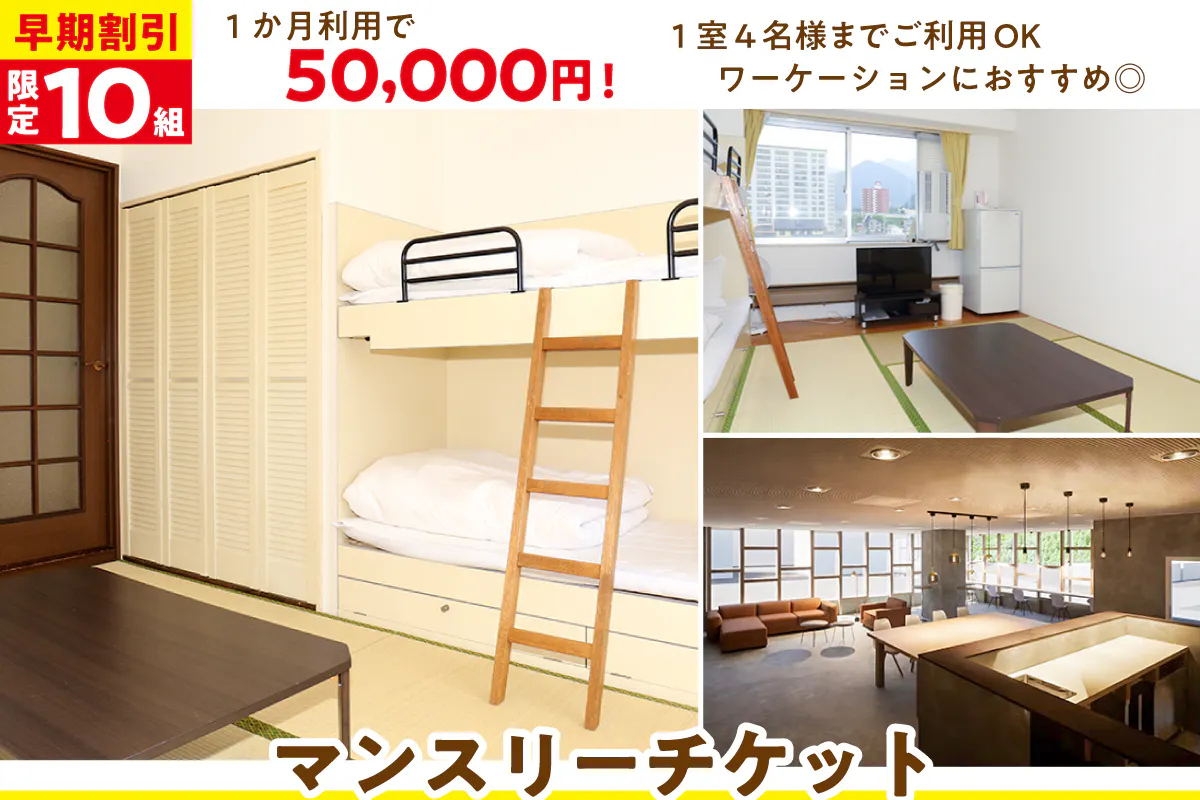 【早期割引限定10組】1ヶ月利用で50,000円!1室4名様までご利用OK・ワーケーションにおすすめ◎マンスリーチケット