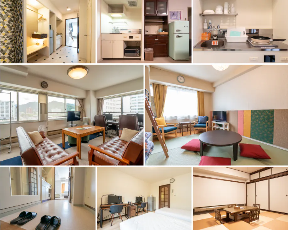 お部屋は少人数向けの和室、洋室、最大9名様が宿泊できるお部屋まで用途に合わせてお選び頂けます。