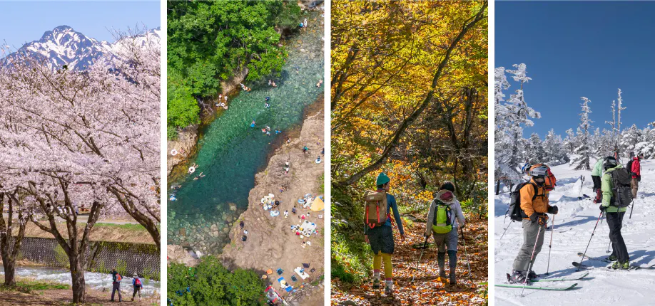 湯沢町は人口7,896人(2022年9月末時点)、温泉と多くのスキー場があることで知られています。バブル期には多くのリゾートマンションが建設され、多くの田んぼの中に高層マンションが立ち並ぶ、おそらく日本で唯一の風景が楽しめる場所でもあります。冬はスキー・スノーボードがメインですが、春夏秋シーズンはトレッキングに自然散策、山菜採りにキノコ狩り、キャンプやカヤック、鮎釣りなどアウトドアレジャーも楽しめます。