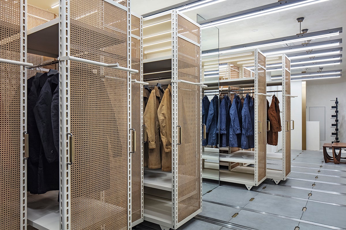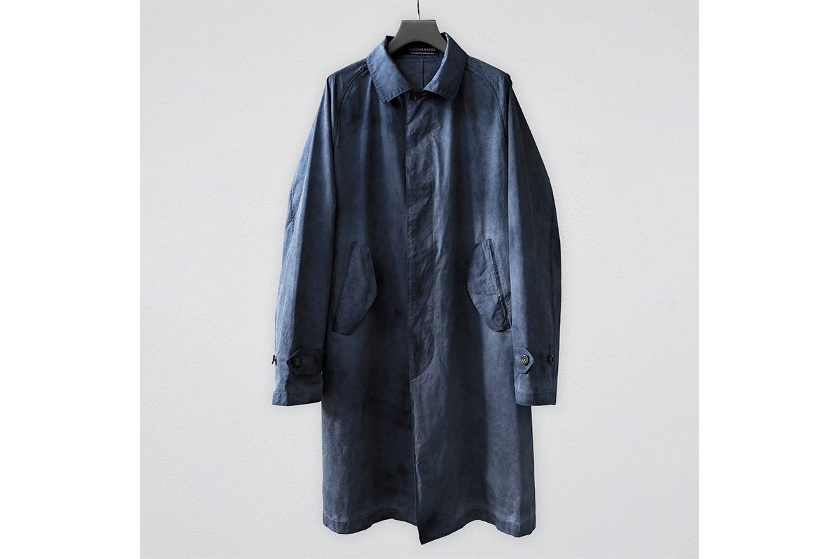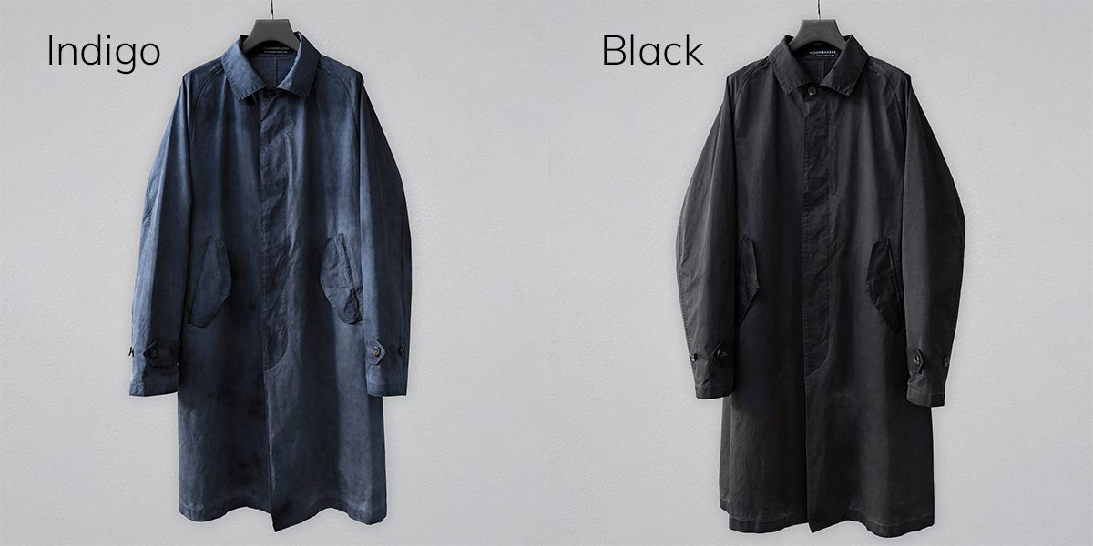 ステンカラーコートは比翼仕立て(隠しボタン)のシンプルなデザインで、素材の差異が商品品位に直結する商品であり、またラグラン袖で肩可動に適した仕様から、機能性コートの元祖でもあります。