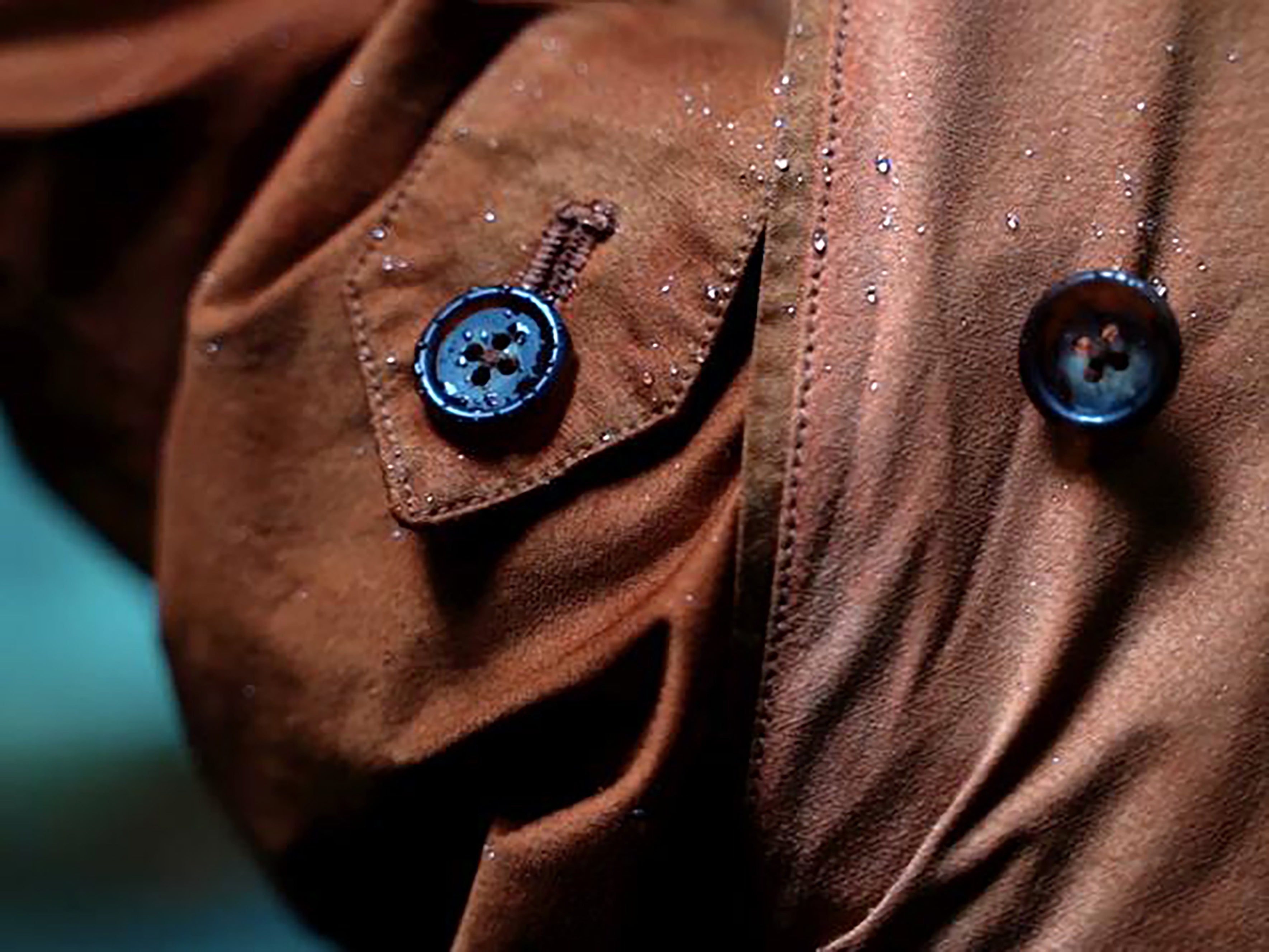 「キマイラ スキン® コート」は、お家で手洗い可能な仕様となっています。元々、強い撥水加工で汚れがつきにくい商品ですが、汚れが付着した際でも商品の収縮も少なく、手洗いで汚れを落としていただけます。