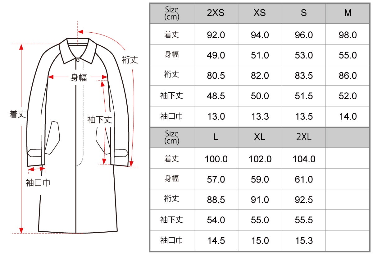 A:サイズ表に詳細サイズを記載致しましたので、お持ちのアウターと比較しながらご検討くださいませ。