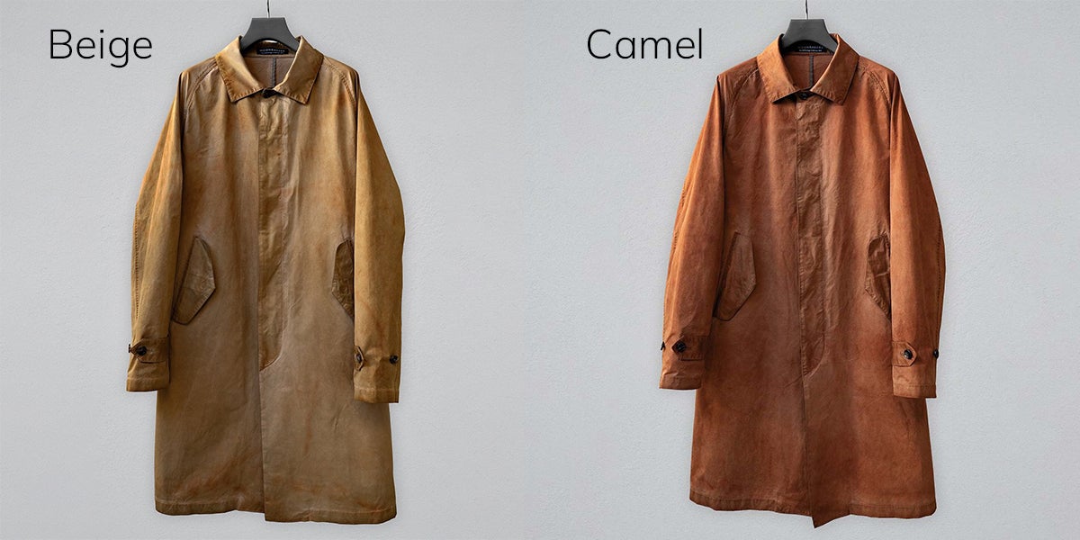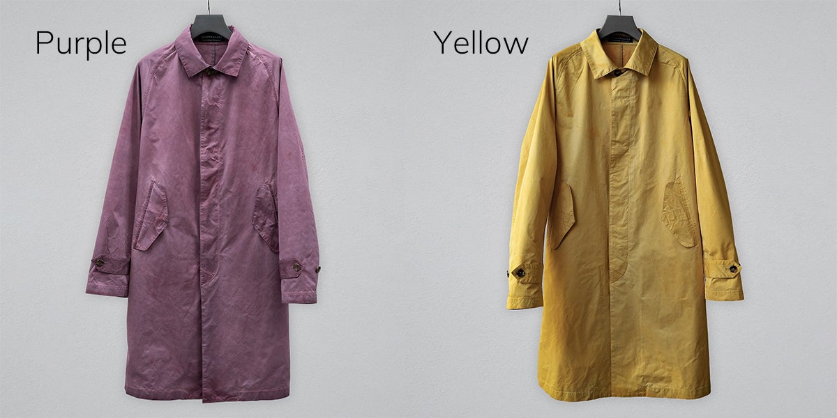 今までにないヴィンテージレザー調の唯一無二の色調・風合いを、多彩なカラーでお楽しみ頂けるよう、コートでは最近あまり見かけないビビッドなカラー展開も行っています。