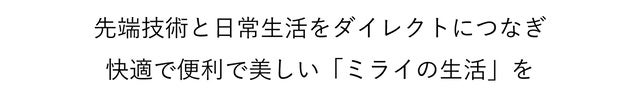 わたしたちは、「最新・最先端のテクノロジーと日常生活をダイレクトにつなぎ、快適で便利で美しい「ミライの生活」をユーザーとともに創造する」という大きく遥かな夢をもち、それに向かって挑戦をおこなっています。