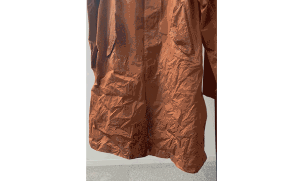 「キマイラ スキン® コート」は、お家で手洗い可能な仕様となっています。元々、強い撥水加工で汚れがつきにくい商品ですが、汚れが付着した際でも商品の収縮も少なく、手洗いで汚れを落としていただけます。